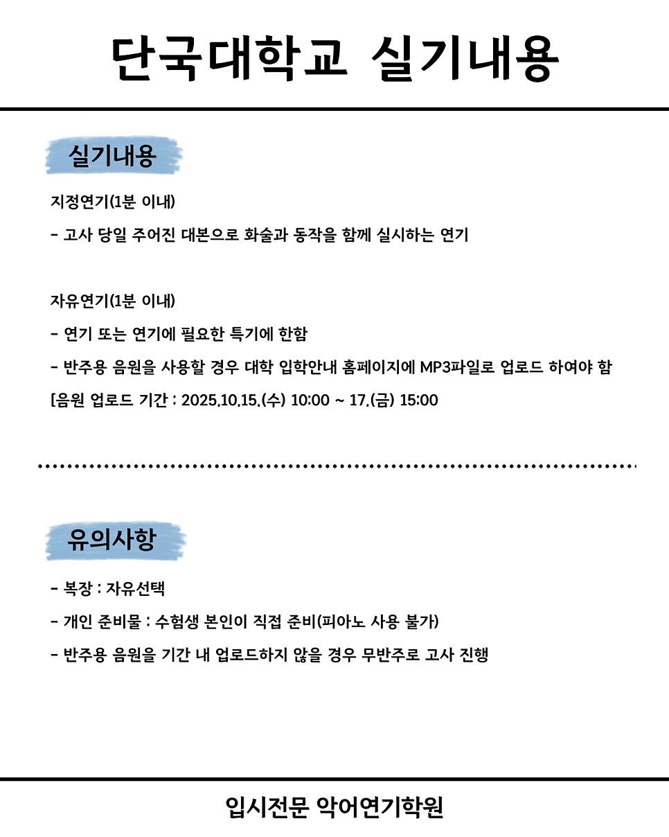 연기레슨 단국대학교 연극전공2026학년도 수시 모집요강_악어연기학원