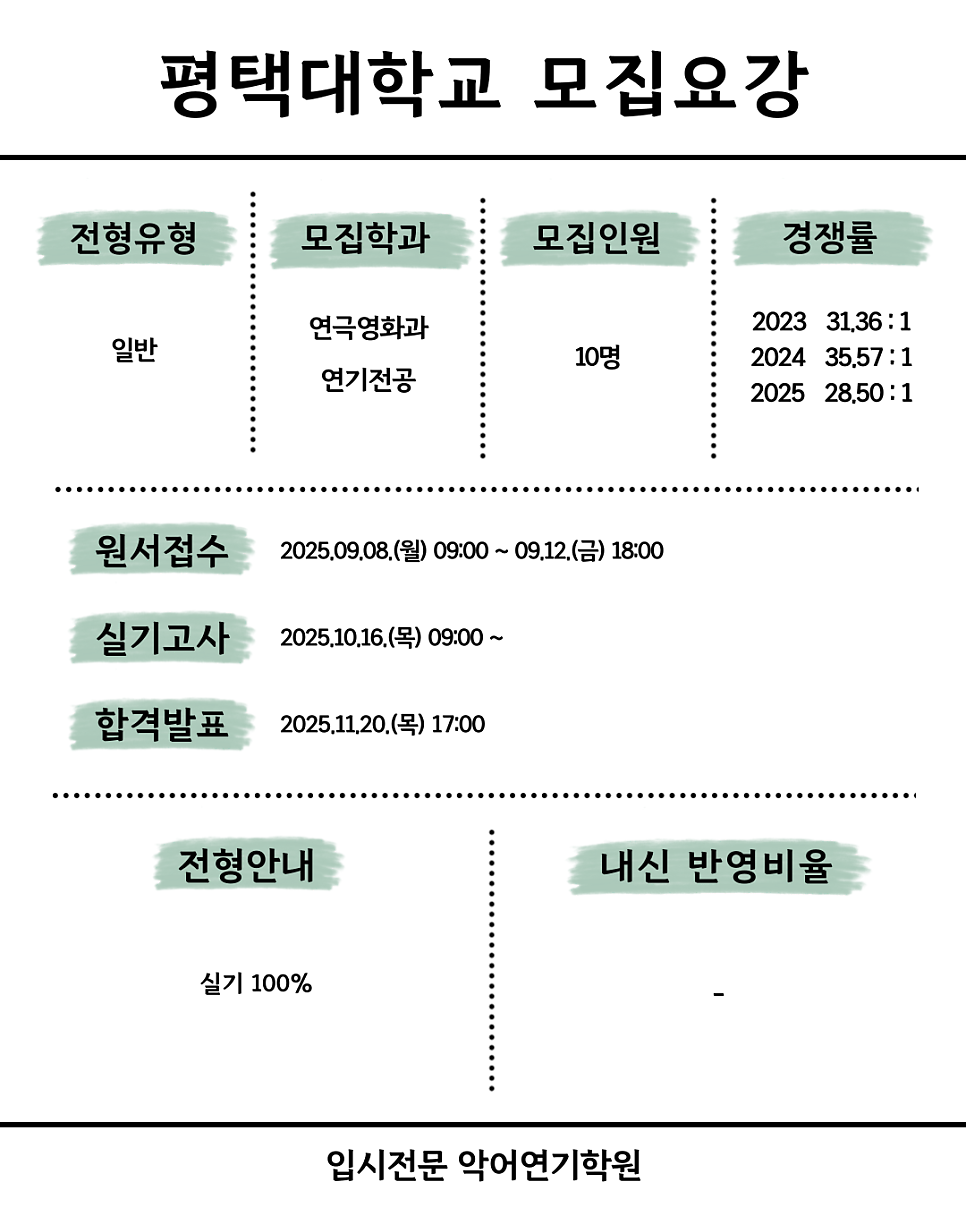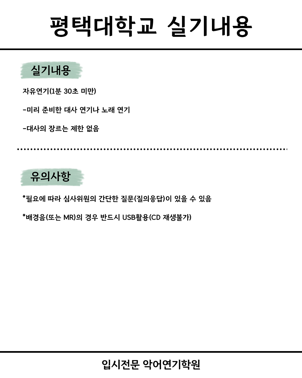 연기레슨 평택대학교 연기전공2026학년도 수시 모집요강_악어연기학원
