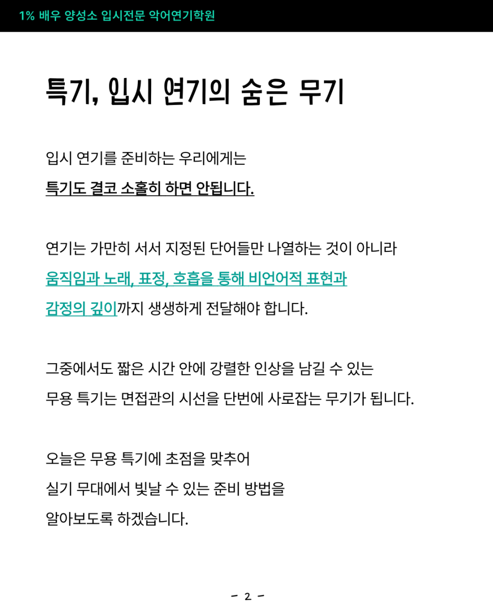 특기, 입시 연기의 숨은 무기
