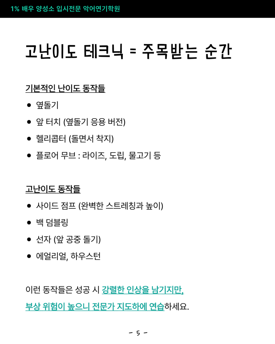 부상 위험이 높으니 전문가 지도하에 연습하세요.