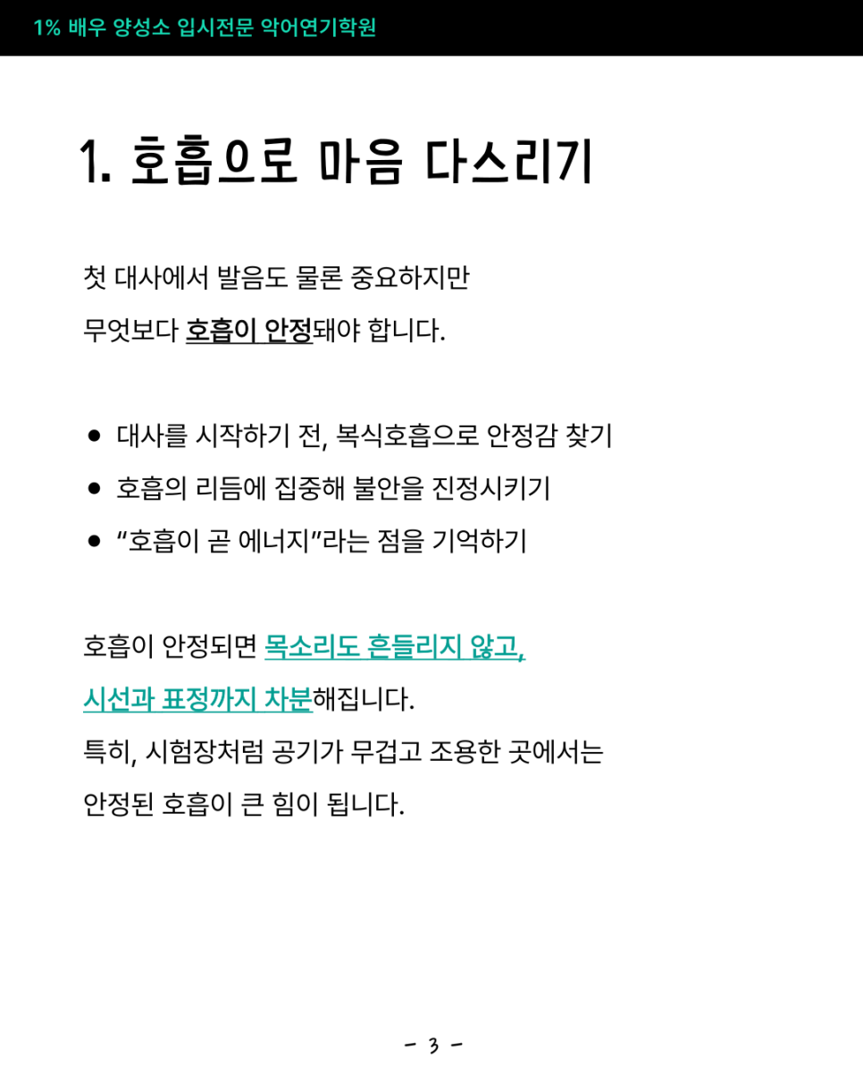 대사를 시작하기 전, 복식호흡으로 안정감 찾기