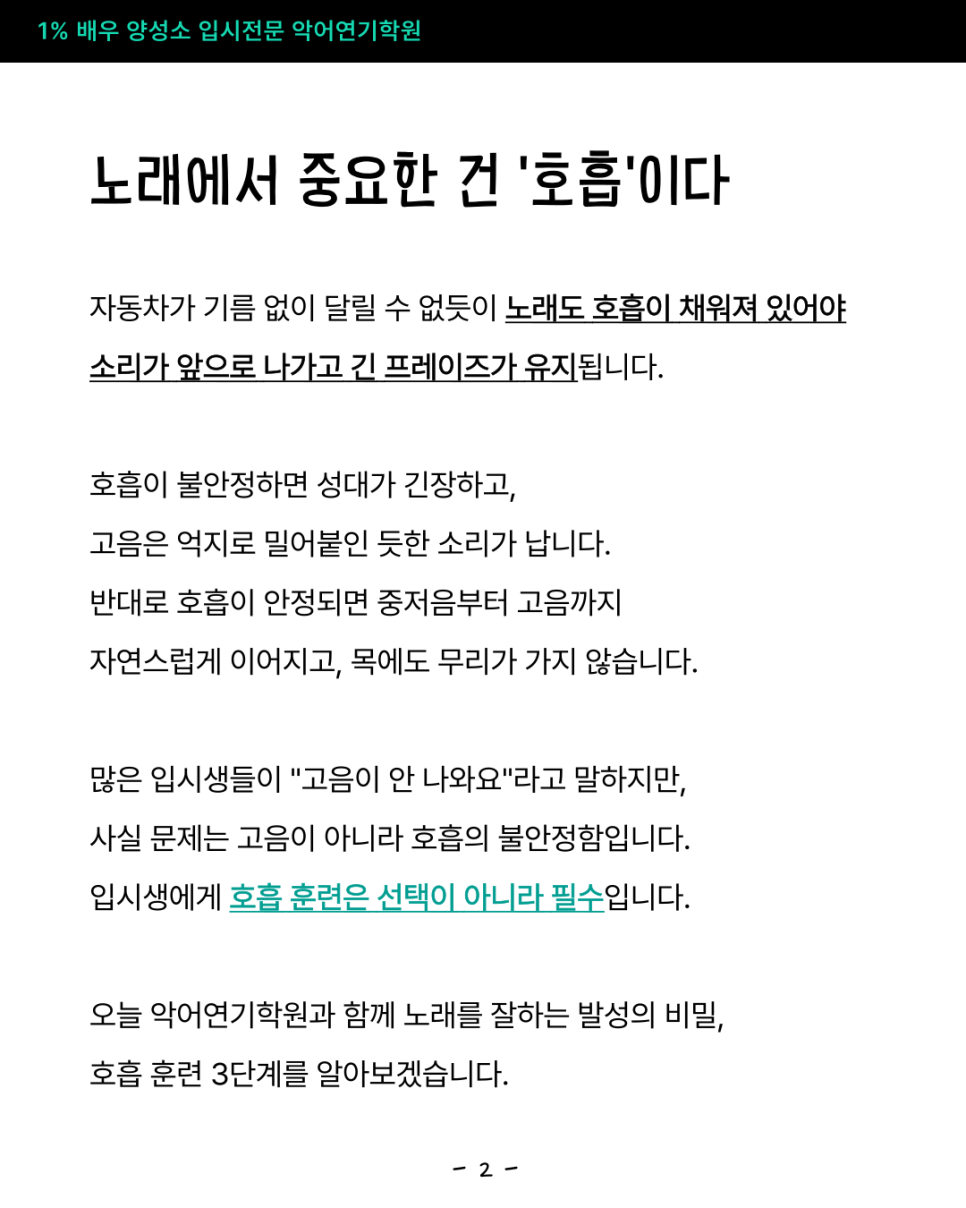 연기레슨 압구정연기입시학원 노래 잘하는 비밀 입시생을 위한 발성 훈련법 3단계_악어연기학원