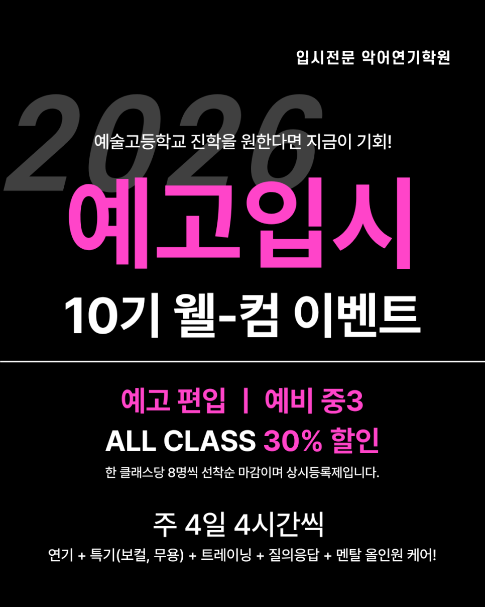 2026학년도 예고입시반 안내를 마무리하겠습니다.