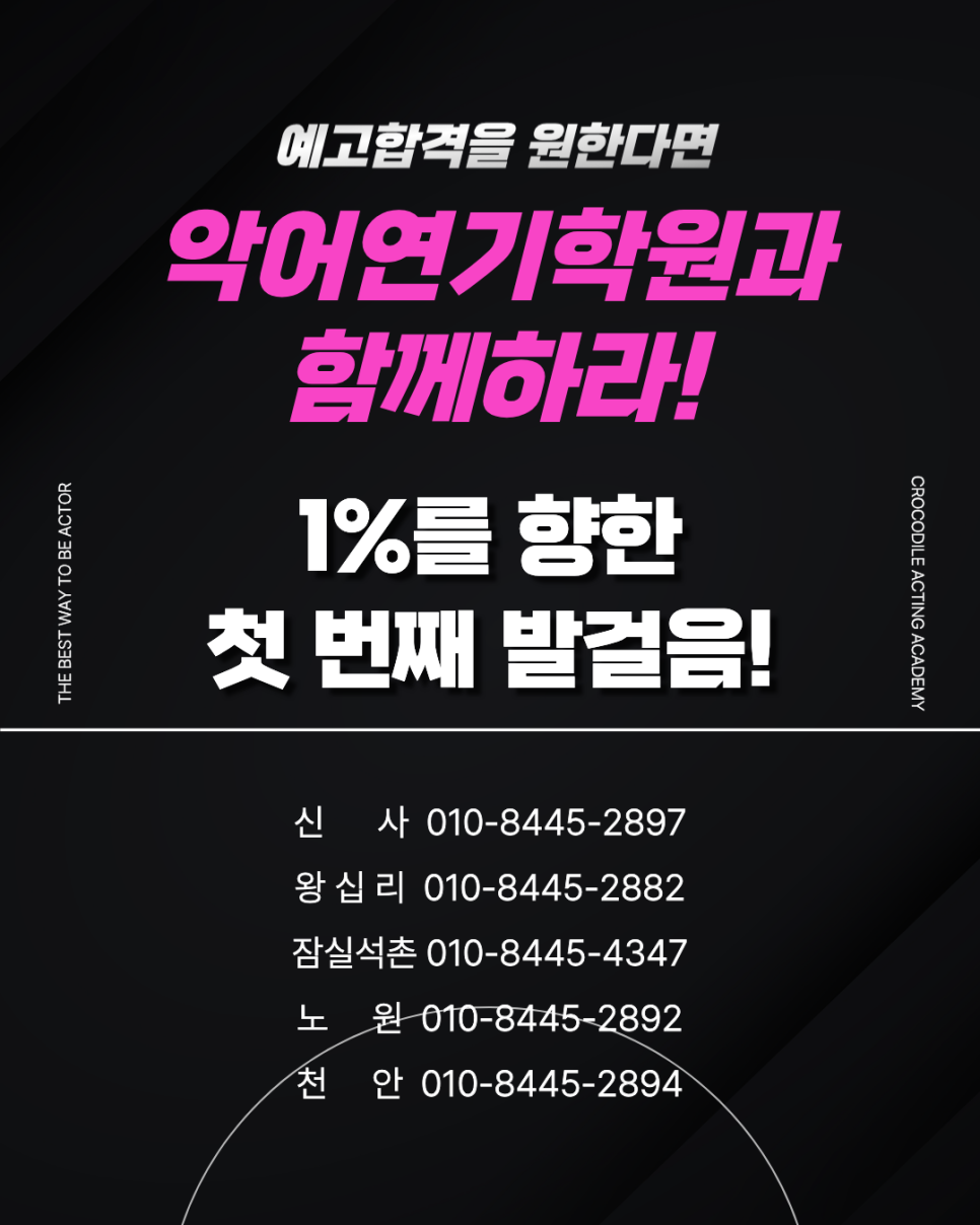 연기레슨 [악어연기학원] 예고 합격을 원한다면! 악어와 함께 하라! (연극영화과/뮤지컬과/방송연예과)_악어연기학원