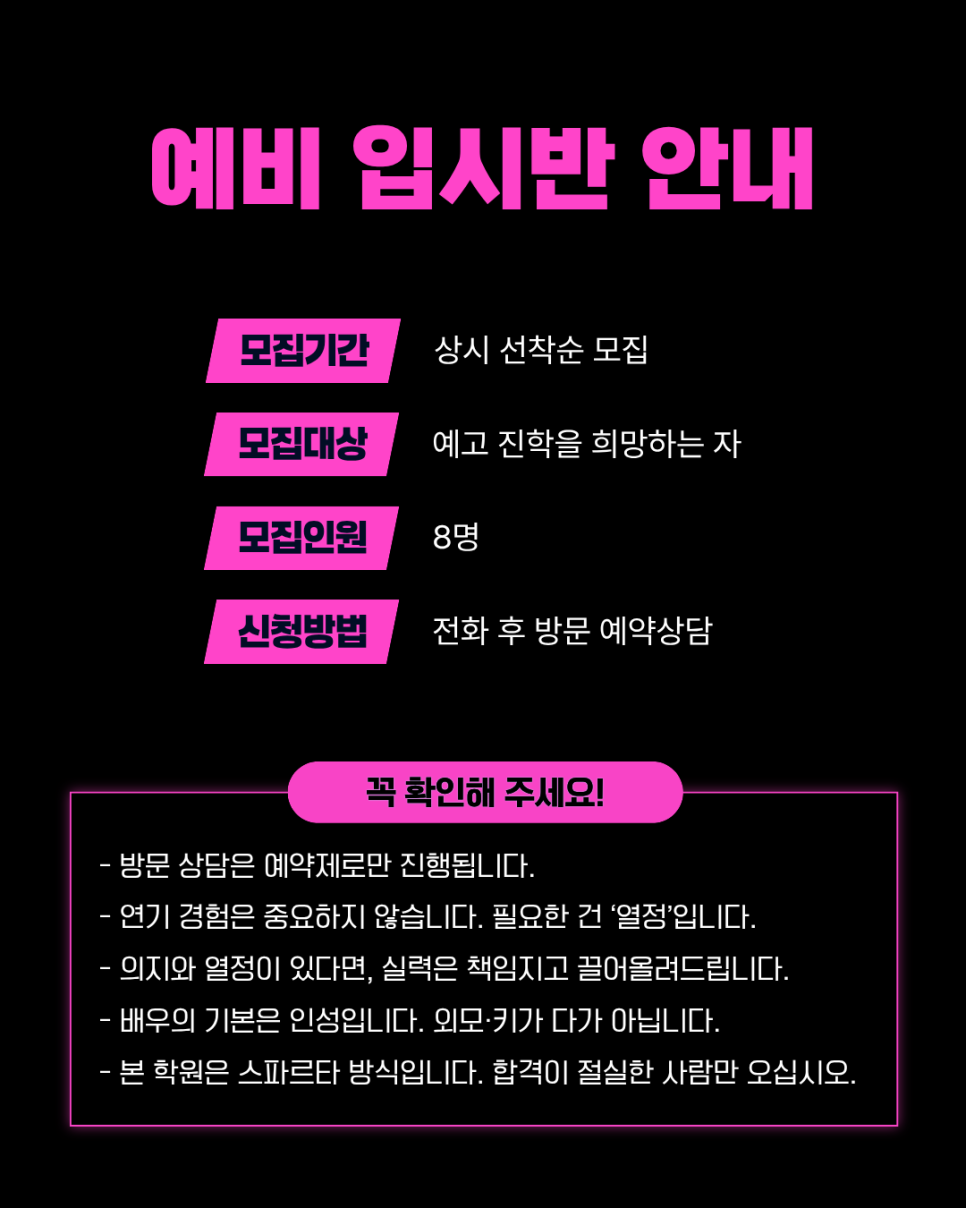 전문배우되기 프로젝트 (1대1집중레슨)!
