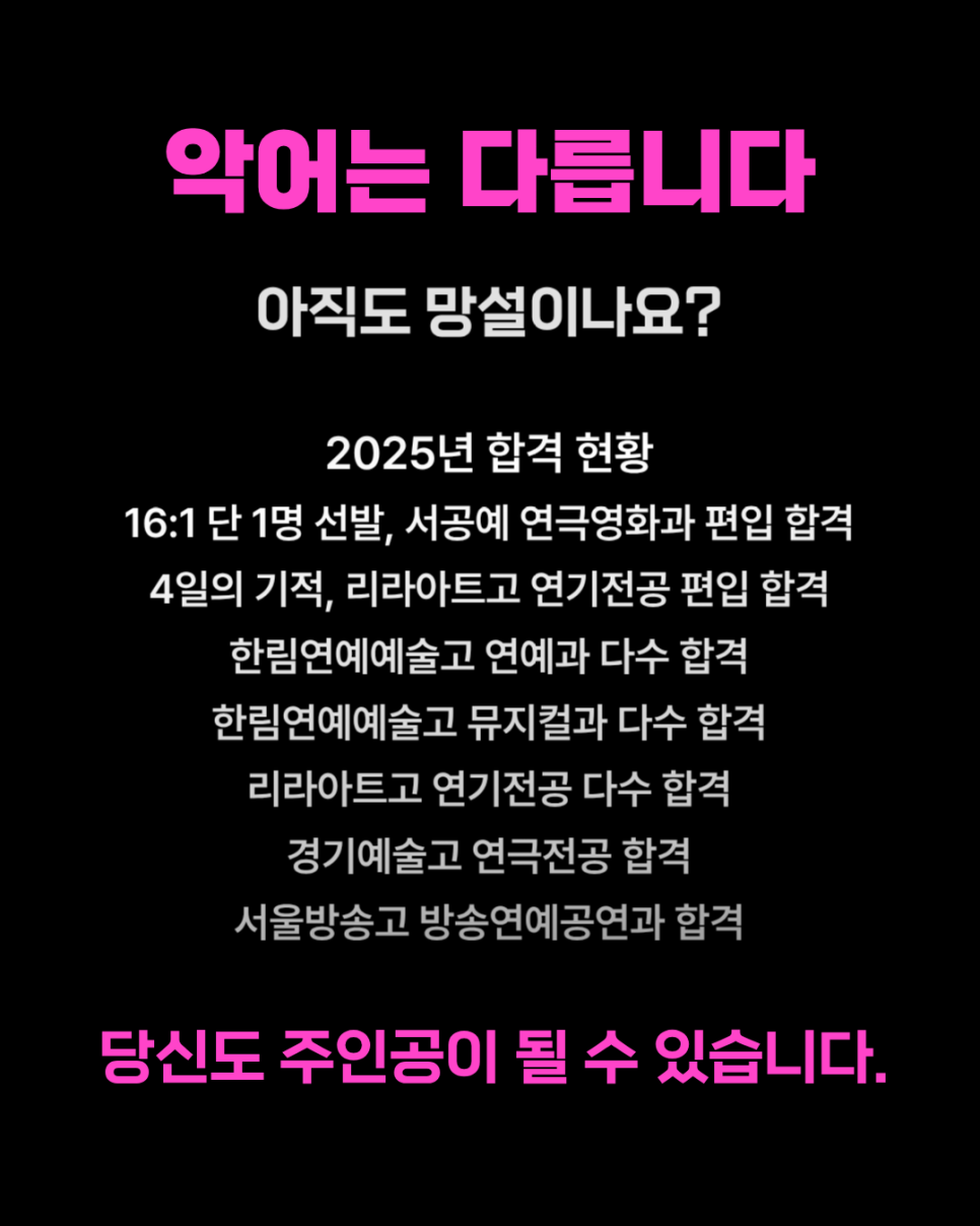 단 1명 만을 선발하는 2025년 서공예 연극영화과 편입 합격
