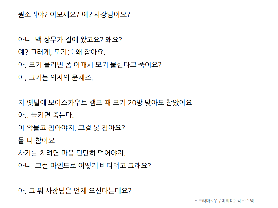처음 보는 대사가 한눈에 들어오기 시작해요.
