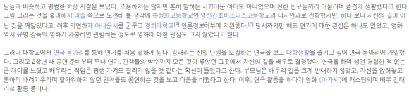 김태리 배우는 대학교 진학 후 동아리 활동을 통해서 꿈을 찾게 됩니다. 아가씨 이전에 단편영화, 극단에서 활동을 한 이력이 있습니다.
