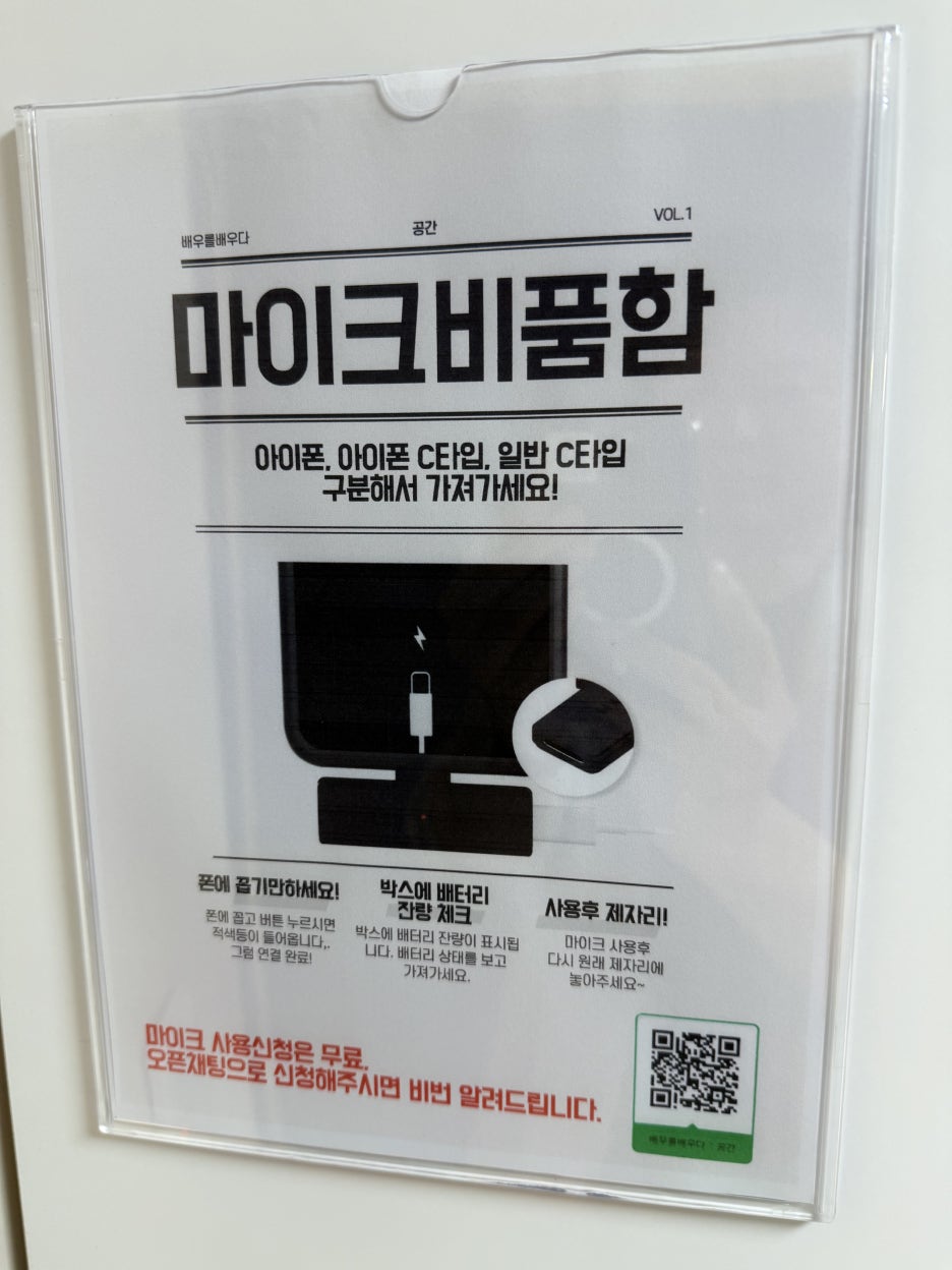 노래연습 금지 배우전용 연기연습만! 홍대합정 배우를배우다 공간 연습실 소개